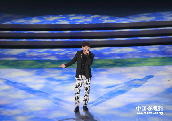 周杰倫演唱了歌曲《青花瓷》。周杰倫一出場,既引來現(xiàn)場一片尖叫聲,現(xiàn)場氣氛十分熱烈,所有觀眾都跟著節(jié)奏打拍子。一曲完畢,大家仍意猶未盡,直呼“要求再來一曲”?上r(shí)間有限,未能成愿。(中國臺(tái)灣網(wǎng) 普燕 攝)