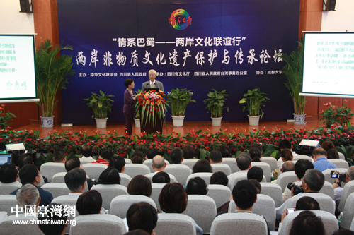 12日,兩岸非物質(zhì)文化遺產(chǎn)保護(hù)與傳承論壇在成都大學(xué)舉行,兩岸百余名嘉賓出席。(中國臺灣網(wǎng) 趙輝 攝)