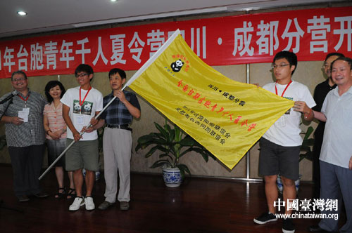 四川省臺聯(lián)副會長陳開明向營員授旗。圖片來源:四川臺聯(lián)