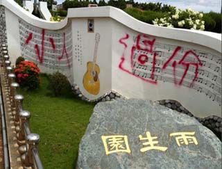 中國臺灣網(wǎng)7月15日消息 據(jù)臺灣今日新聞網(wǎng)報道,臺著名已故歌手張雨生的墓地“雨生園”日前遭人噴漆,繪有他代表作《口是心非》樂譜的外墻上寫有“小人”與“過分”等侮辱性詞語;這一行為遭到了一致聲討,網(wǎng)友紛紛在網(wǎng)上痛斥噴漆者是“垃圾”。