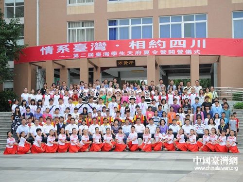 中國(guó)臺(tái)灣網(wǎng)7月16日成都消息 應(yīng)中共四川省委書記、省人大常委會(huì)主任劉奇葆邀請(qǐng),7月12日,百名來自臺(tái)灣云林縣、苗栗縣和南投縣的臺(tái)灣師生,在臺(tái)灣民意代表許舒博帶領(lǐng)下,來川參加“情系臺(tái)灣 相約四川”第二屆臺(tái)灣學(xué)生天府夏令營(yíng)。7月15日,在成都錦江區(qū)七中育才學(xué)校三圣分校舉行了隆重的開營(yíng)儀式。中共四川省委副書記、省人大常委會(huì)副主任、黨組書記李崇禧,四川省人民政府副省長(zhǎng)黃彥蓉出席開營(yíng)儀式,并與參加夏令營(yíng)活動(dòng)的川臺(tái)兩地學(xué)生互動(dòng)交流。