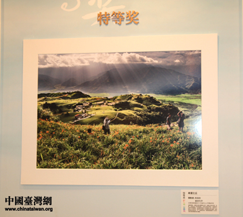 臺(tái)灣慈濟(jì)大學(xué)的陳福堂同學(xué)憑借這幅《希望之丘》獲得了特等獎(jiǎng)。(中國(guó)臺(tái)灣網(wǎng) 楊永青 攝)