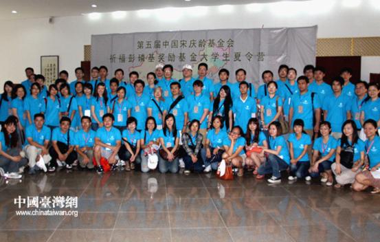 參與夏令營(yíng)開營(yíng)儀式的師生在“祈福墻”前合影留念。(中國(guó)臺(tái)灣網(wǎng) 高斯斯 攝)