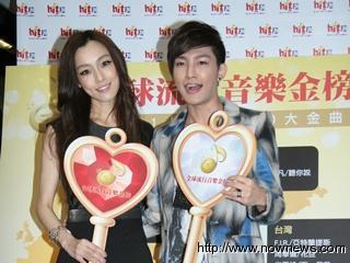 范范、炎亞綸揭曉“2011全球流行音樂(lè)金榜”上半年度20大金曲名單。圖片來(lái)源:臺(tái)灣媒體