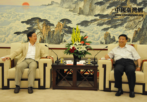 山東省長(zhǎng)姜大明會(huì)見臺(tái)灣鄉(xiāng)林集團(tuán)董事長(zhǎng)賴正鎰(圖片來源:山東省臺(tái)辦)
