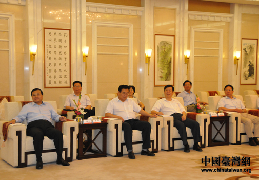 山東省副省長(zhǎng)才利民,省政府副秘書長(zhǎng)蒿峰、張明忠,山東省臺(tái)辦主任倪明遠(yuǎn)、副巡視員曹曉武等參加會(huì)見(圖片來源:山東省臺(tái)辦)