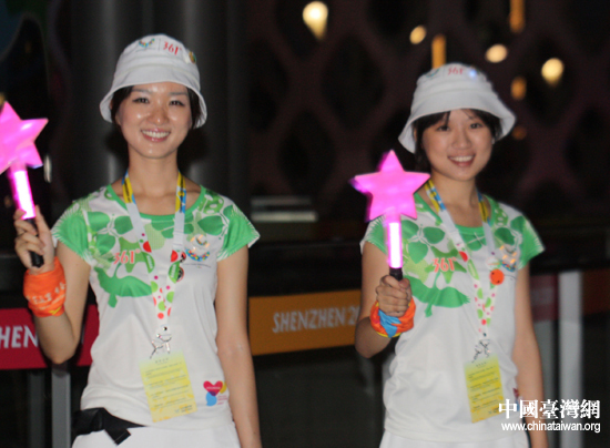 大運(yùn)志愿者微笑迎接各方賓朋。(中國(guó)臺(tái)灣網(wǎng) 王思羽 攝)