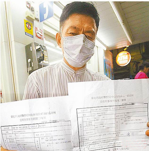 陳老板持控告王姓、陳姓女子的報(bào)案三聯(lián)單,仍堅(jiān)信彼此有真愛,真是好傻好天真!圖片來源:臺(tái)灣媒體