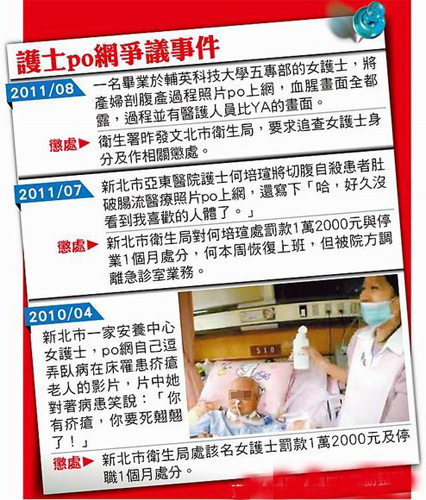護(hù)士po網(wǎng)爭(zhēng)議事件。圖片來(lái)源:臺(tái)灣媒體