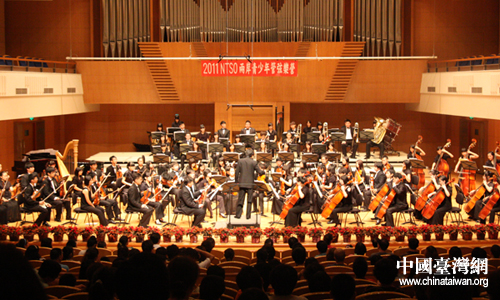 百名兩岸青少年音樂(lè)菁英共同組建的“2011 兩岸青少年管弦樂(lè)營(yíng)”在北京音樂(lè)廳演出。(中國(guó)臺(tái)灣網(wǎng) 黃艷艷 攝)