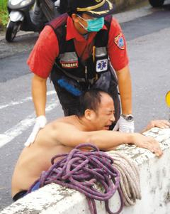 林俊宏當(dāng)場(chǎng)痛哭并幾度要沖入水中尋找父親,被消防人員勸止。 來(lái)源:臺(tái)灣《聯(lián)合報(bào)》