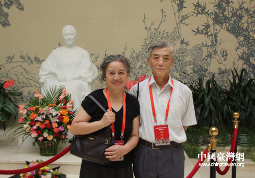 旅美學者楊守禮先生和夫人黃勝利在宋慶齡先生像前合影。(中國臺灣網 李丹 攝)