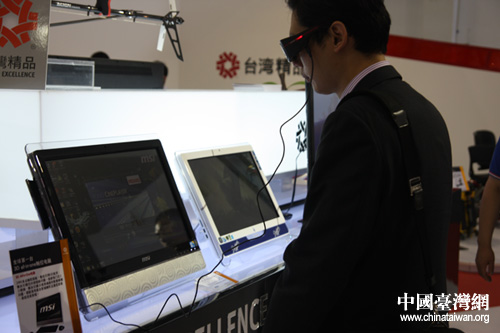 參展觀眾體驗(yàn)超逼真3D觸控一體機(jī)。(中國(guó)臺(tái)灣網(wǎng) 吳斌 攝)
