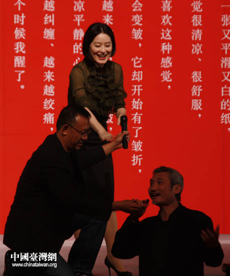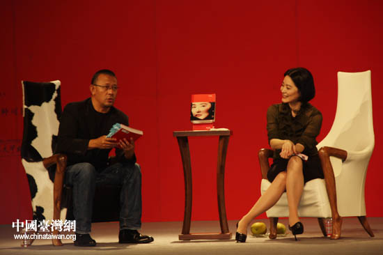 姜文在發(fā)布會上與林青霞對談新書。(中國臺灣網(wǎng) 李丹 攝)