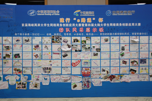 活動(dòng)現(xiàn)場(chǎng)的團(tuán)隊(duì)風(fēng)采展示板,展現(xiàn)了兩岸大學(xué)生在此次活動(dòng)中的精彩歷程。(中國(guó)臺(tái)灣網(wǎng) 芮益芳 攝)