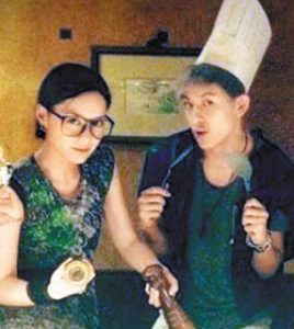 阿嬌(左)和貌似陳冠希的敖犬同吃鐵板燒。圖片來(lái)源于網(wǎng)絡(luò)
