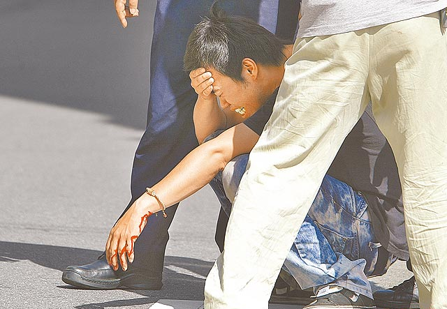黃的追求者張姓男子接獲噩耗趕到現(xiàn)場坐地痛哭,還意圖割腕殉情。(圖片來源:臺灣媒體)