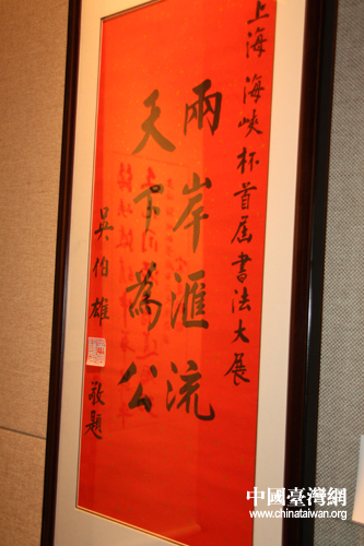 中國國民黨榮譽(yù)主席吳伯雄書法作品“兩岸匯流 天下為公” (中國臺(tái)灣網(wǎng) 李桂英 攝) 第1頁第2頁第3頁