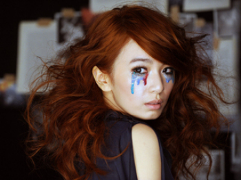 田馥甄在MV中,扮演囚禁天使,彩色眼淚營造出詭異氣氛。(圖片來源于網(wǎng)絡(luò))