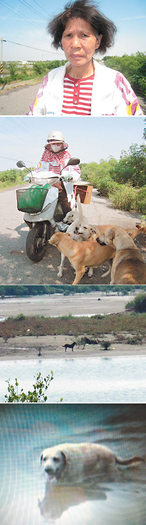 王沈金來每天總是花好幾個小時,沿著三公里堤岸,邊喂邊等所有的狗游過來,偶有10多只狗一起游上岸的畫面,志工媽媽徐滿惠說,“不清楚的人,還以為狗真的在海中游泳!