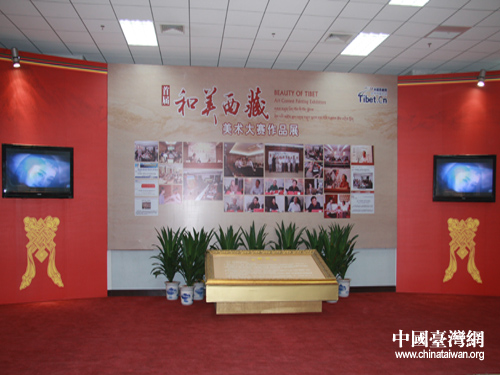 首屆“和美西藏”美術(shù)大賽作品展廳(中國臺灣網(wǎng) 張維佳攝)