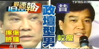 政壇帥哥黃義交跑攤跌倒,臉上瘀青數(shù)塊。(圖片來(lái)自臺(tái)灣媒體)