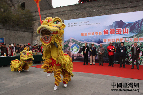 萬(wàn)里長(zhǎng)城支持臺(tái)灣玉山競(jìng)選世界新七大自然奇觀活動(dòng)在居庸關(guān)長(zhǎng)城舉行(中國(guó)臺(tái)灣網(wǎng) 王文英 攝)