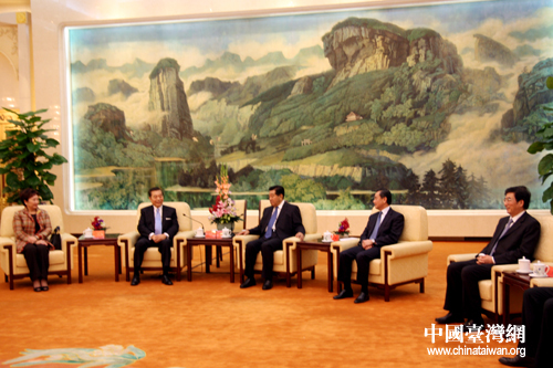 中共中央政治局常委、全國(guó)政協(xié)主席賈慶林在人民大會(huì)堂福建廳會(huì)見(jiàn)來(lái)京參加第十四屆京臺(tái)科技論壇的臺(tái)灣工商界代表。(中國(guó)臺(tái)灣網(wǎng) 張曉靜 攝)