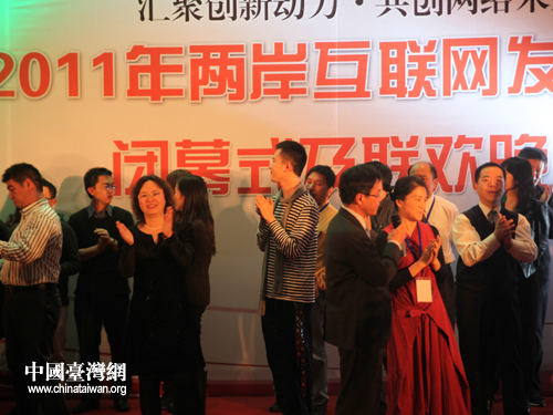 兩岸嘉賓舉杯慶賀兩岸互聯(lián)網(wǎng)發(fā)展論壇成功舉辦。(中國臺灣網(wǎng) 王思羽 攝)
