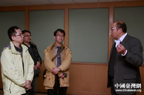 臺(tái)灣嘉賓在聽取中國(guó)臺(tái)灣網(wǎng)副總編吳彤(右一)介紹網(wǎng)站情況。(中國(guó)臺(tái)灣網(wǎng) 于斯文 攝)