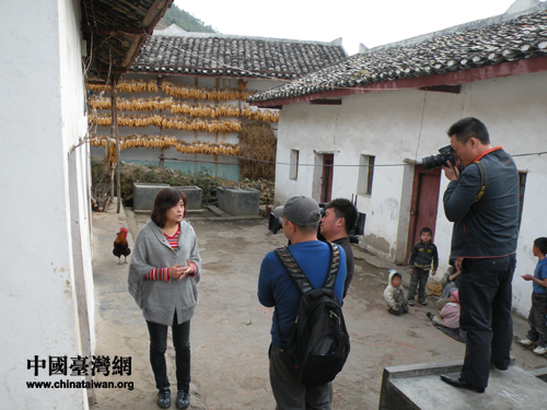 中央電視臺(tái)記者采訪正在越西縣大營(yíng)盤村走訪村民的臺(tái)胞張平宜(圖片來(lái)源:四川省臺(tái)辦)