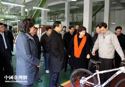 山東省副省長才利民一行在山東美利達自行車有限公司調(diào)研。(圖片來源:山東省臺辦)