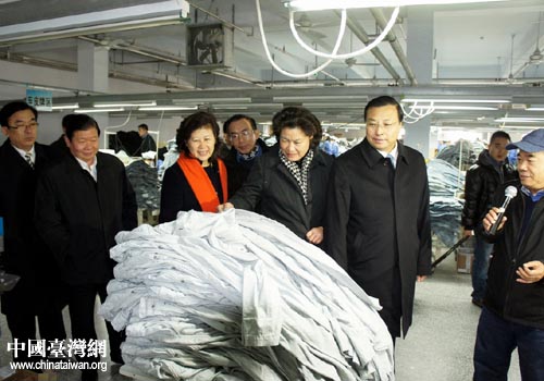 山東省副省長才利民一行在臺元紡織元茂紡織有限公司調(diào)研。(圖片來源:山東省臺辦)