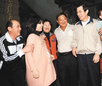 馬英九昨晚前往臺中葡萄農(nóng)詹德森家作客,詹家二女兒快生了,堅持看到馬英九才要去生小孩,讓馬很感動。(圖片來源:臺灣《聯(lián)合報》)