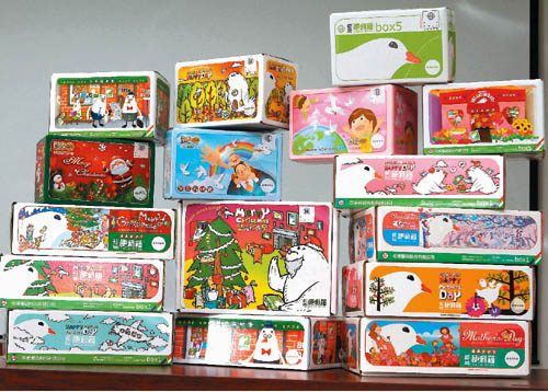 郵局各尺寸的便利箱、便利袋,目前一個(gè)月平均可賣出120萬(wàn)個(gè),每次限量5萬(wàn)個(gè)的節(jié)慶便利箱,兩周內(nèi)一定賣光。曾錦雄說,剛開始推出節(jié)慶便利箱,就發(fā)現(xiàn)有民眾在搜集,于是不敢怠慢,每年都想盡辦法推出不一樣的新花樣;而且力求一年中的每個(gè)節(jié)慶便利箱上面的圖案風(fēng)格都要一致。