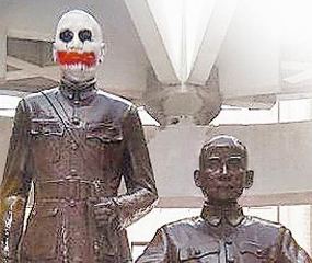 中國臺灣網(wǎng)1月16日消息 據(jù)臺灣今日新聞網(wǎng)報道,蔣介石銅像化身小丑?臺灣高雄中山大學的“孫中山與蔣介石銅像”,遭到不明人士惡作。≈灰娛Y介石的嘴巴涂成大紅色,整顆頭被噴成白色,搖身一變成為電影《蝙蝠俠》中的反派角色小丑,校方表示:“惡搞噴漆非常不可取!”