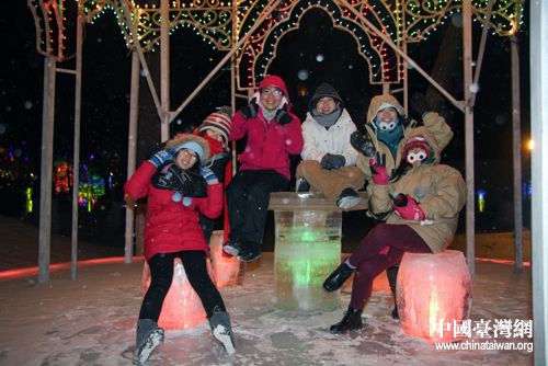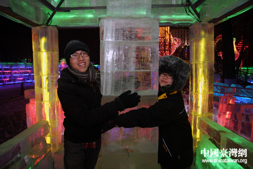 兩岸青年學(xué)子在哈爾濱同游“冰燈游園會”。(中國臺灣網(wǎng) 于斯文 攝)