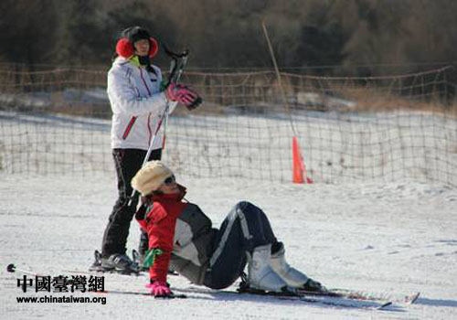 冬令營(yíng)成員在滑雪場(chǎng)嬉戲玩耍。(圖片來(lái)源:沈陽(yáng)市臺(tái)辦)