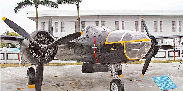 黑蝙蝠中隊(duì)駕駛的B-26輕型轟炸機(jī)昨日在高雄展出。(圖片來源:臺灣媒體)