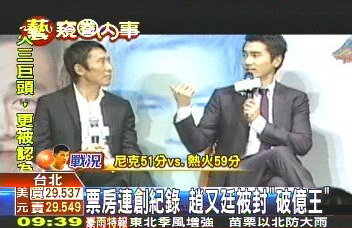 票房連創(chuàng)紀錄 趙又廷被封“破億王”(圖片來源:臺灣TVBS電視臺)