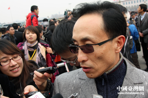 全國(guó)政協(xié)委員鞏漢林接受媒體記者采訪。(中國(guó)臺(tái)灣網(wǎng) 于斯文 攝)