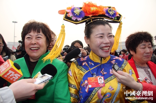 中國(guó)臺(tái)灣網(wǎng)3月5日北京消息 十一屆全國(guó)人大五次會(huì)議5日上午在北京開(kāi)幕,來(lái)自全國(guó)各地的少數(shù)民族代表們身著民族盛裝步入人民大會(huì)堂。(記者 王偉)