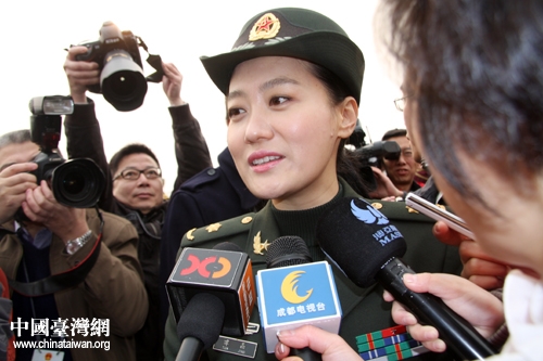 十一屆全國人大五次會議5日上午9時在北京開幕。圖為解放軍代表譚晶進(jìn)入會場前接受媒體采訪。(中國臺灣網(wǎng) 王偉)