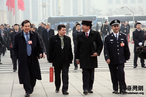 十一屆全國人大五次會議5日上午9時在北京開幕。圖為新疆代表團(tuán)成員步入會場。(中國臺灣網(wǎng) 王偉)