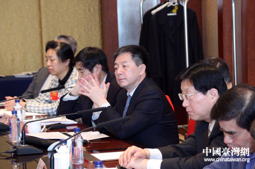 中共中央臺辦、國務(wù)院臺辦副主任葉克冬7日上午應(yīng)邀出席全國政協(xié)十一屆五次會議臺盟、臺聯(lián)界別聯(lián)組討論,聽取委員發(fā)言,介紹兩岸關(guān)系形勢,并回答了大家提出的問題。(中國臺灣網(wǎng) 于斯文 攝)