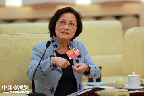 10日下午,在十一屆全國人大五次會議臺灣代表團開放團組的活動現(xiàn)場,陳云英回答記者關(guān)于林毅夫先生能否在有生之年踏上寶島故土的問題。(中國臺灣網(wǎng) 王偉 攝)