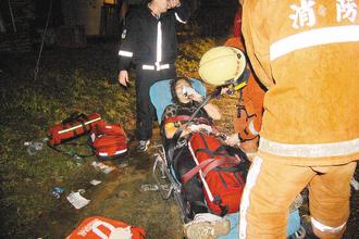 新竹市明湖路今日凌晨發(fā)生一起縱火案,屋內(nèi)3男2女來不及逃出,被燒死在屋內(nèi)。圖為其中1名傷者徐郁臻被送往臺大醫(yī)院新竹分院途中。(圖片來源:臺灣《聯(lián)合報》)