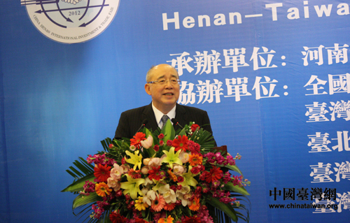 2012豫臺產(chǎn)業(yè)合作交流懇談會于3月23日下午在鄭州隆重舉行,圖為中國國民黨榮譽主席吳伯雄在發(fā)表致辭(中國臺灣網(wǎng)記者 王文英 攝)