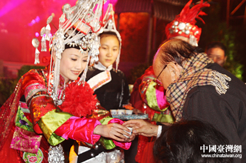 演員向臺下的嘉賓獻(xiàn)酒。(中國臺灣網(wǎng) 劉承思 攝)