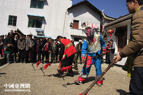 “新郎”、“赤郎”跟隨畬民表演耕種。(中國臺灣網(wǎng) 劉承思 攝)